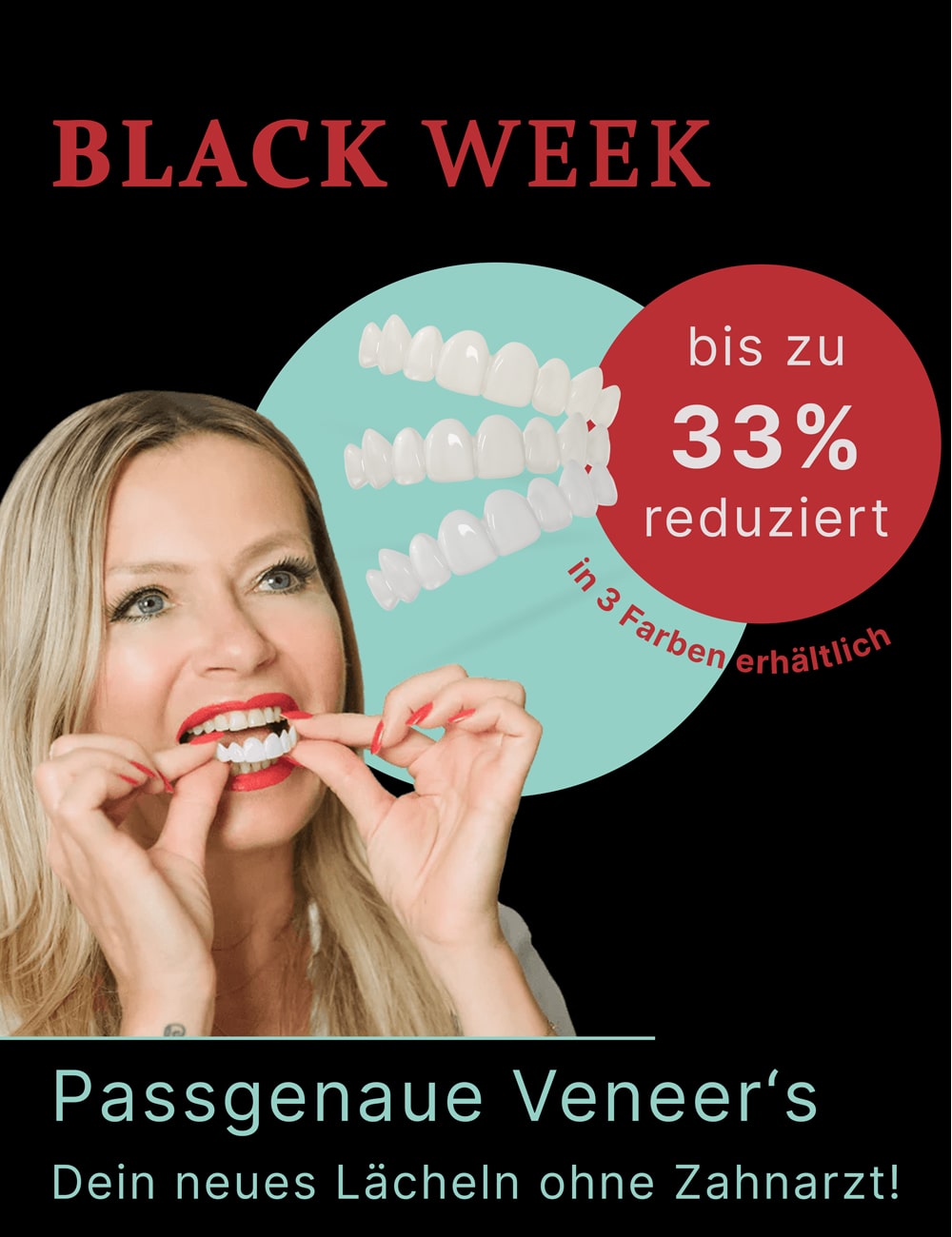 BLACK WEEK DEAL - spare bis zu 33% auf deine Zahnverschönerung ohne Zahnarzt. Individuell und maßgeschneidert für deine Zähne 🧩
